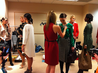 There were stylists . . .tweaking their "looks" with bags, shoes and jewelry. . .